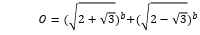 =POWER(SQRT(2+SQRT(3));b)+POWER(SQRT(2-SQRT(3));b)4